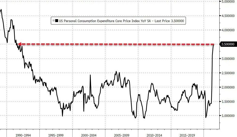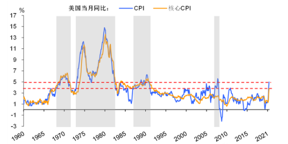 要知道所谓暂时的通胀,除了CPI大涨5%以外,剔除了食品和能源以后的核心通胀也同比上涨了3.8%