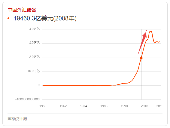 这里可能很多人都会有个疑问,08年的时候中国已经是世界工厂,外汇储备也越来越多。