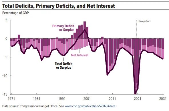 按照美国国会预算办公室的数据,未来十年即使没有经济衰退和经济刺激,美国的财政赤字和债务都不可能改善。