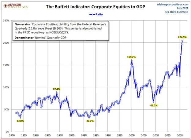 看看巴菲特这个衡量泡沫的指标吧,现在已经历史新高了。