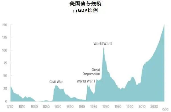 离开了金本位的约束,之前国会对美国债务的限制,也变成了形式主义。
