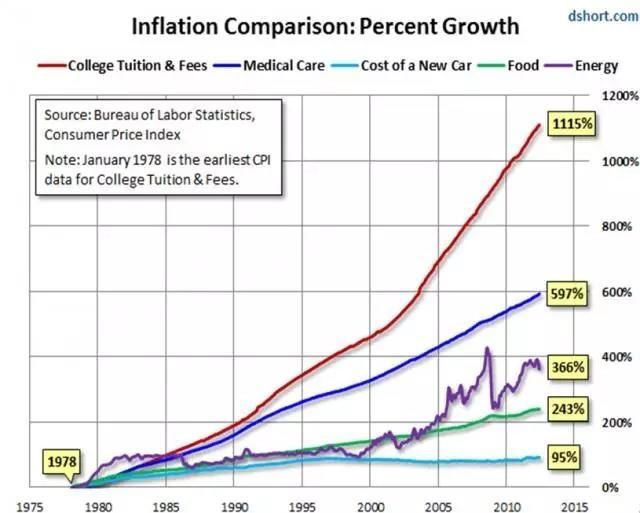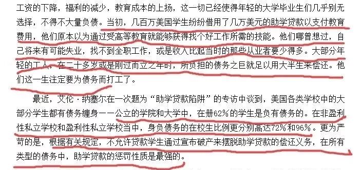 还有人记得当年的占领华尔街是为什么嘛?工资下降,福利减少,教育成本越来越贵,年轻的大学生没有选择,只能大量负债支付教育费用。