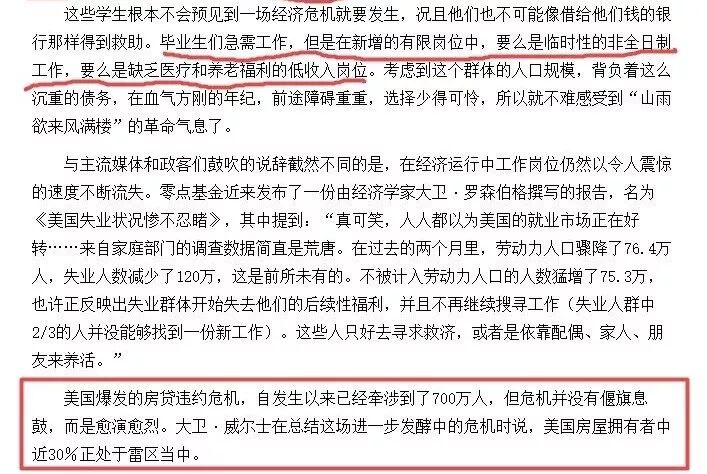 2008年的金融危机,美国量化宽松保护了财团,这一年无数中产破产,年轻人背上一辈子还不起的债务,才有了后面的占领华尔街运动。