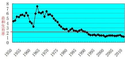这个阶段维持了二十多年,和日本的1950年代到1970年代,生育率水平情况差不多。