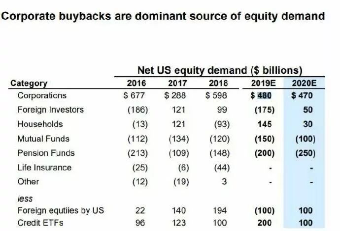 2019年,标普成分公司回购了价值4800亿美元的股票,它们拿来回购的钱比外国投资、散户、共同基金和养老基金加起来还要多,资金来源很大部分都是减税。