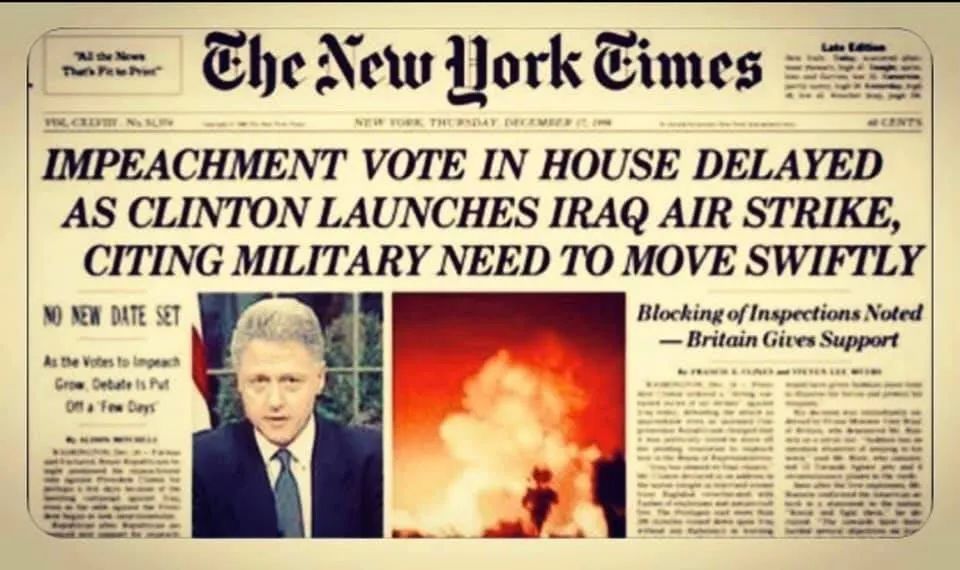 当年克林顿因为和实习生偷情被弹劾,克林顿也是果断出击伊拉克,转移了公众的注意力。