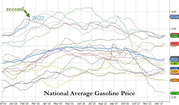 要知道往年这个时候,美国汽油价格从来没有这么高过,最近已经创下了历史记录。