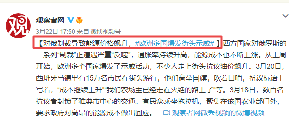 因为它们别无选择,依赖俄罗斯石油和天然气的欧洲,已经爆发了大规模街头示威。