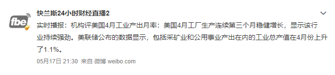 美国3月工业生产数据强劲增长,同比增长了5.5%。到了四五月份这个数据已经连续三个月稳健增长。