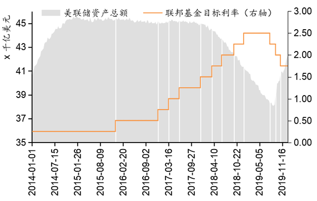 可以看出美联储上轮缩表周期,最终从2017年10月一直持续到了2019年9月。