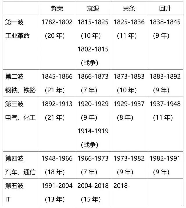 如果从康波周期的角度来划分的话,我们到目前为止经历了五次康波周期。
