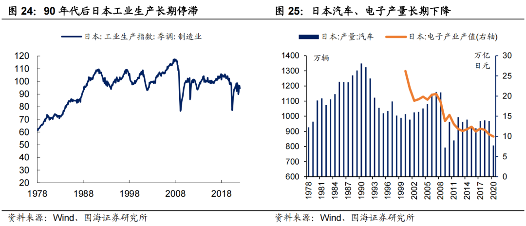 所以在上世纪90年代,日本社会步入老龄化和人口红利褪去之后,过去的制造业优势逐步不在了。