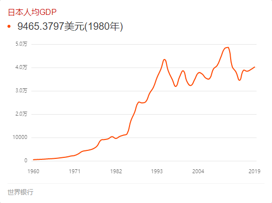 日本的经济总量在这之后,永远停滞在五六万亿美元左右的水平,三十年原地踏步。