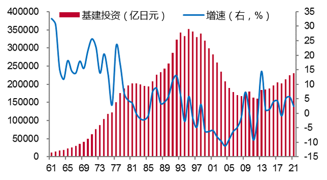 这年基建投资出现高点,应该是日本政府为了应对1990年开始的房地产泡沫破灭,采取的稳增长逆周期政策。