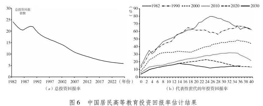 从下面左边这张统计图里,我们其实也可以看出来,教育的总投资回报率其实是在下降的。