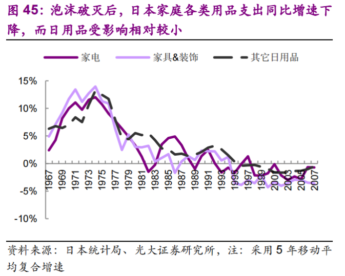 但是到了1990年代之后,不管是家电、家具还是其他日用品,都开始步入了增速负增长。