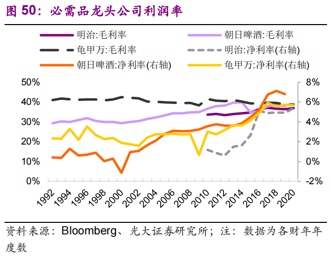 但是这个阶段日本那些龙头消费品公司,市占率变得越来越高。比如明治、朝日啤酒,都是差不多的情况。