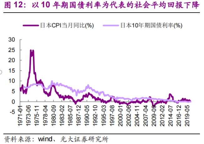 经济增速慢下来以后还有一个影响,那就是我们看到日本的投资收益率越来越低,利率水平就是个明显的标志。