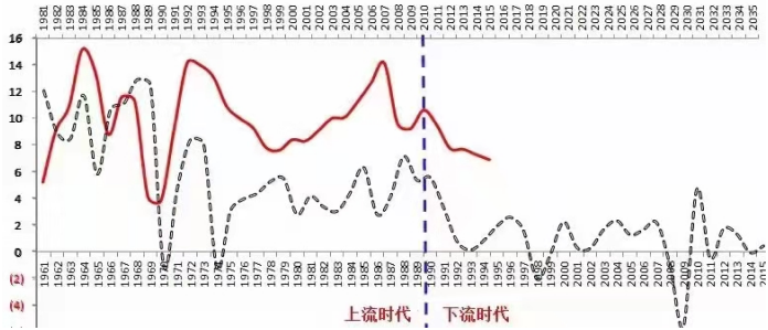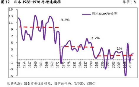 1980年之后,日本的经济开始换挡降速,从过去30年的平均9%上下,降低到3.7%的中枢。