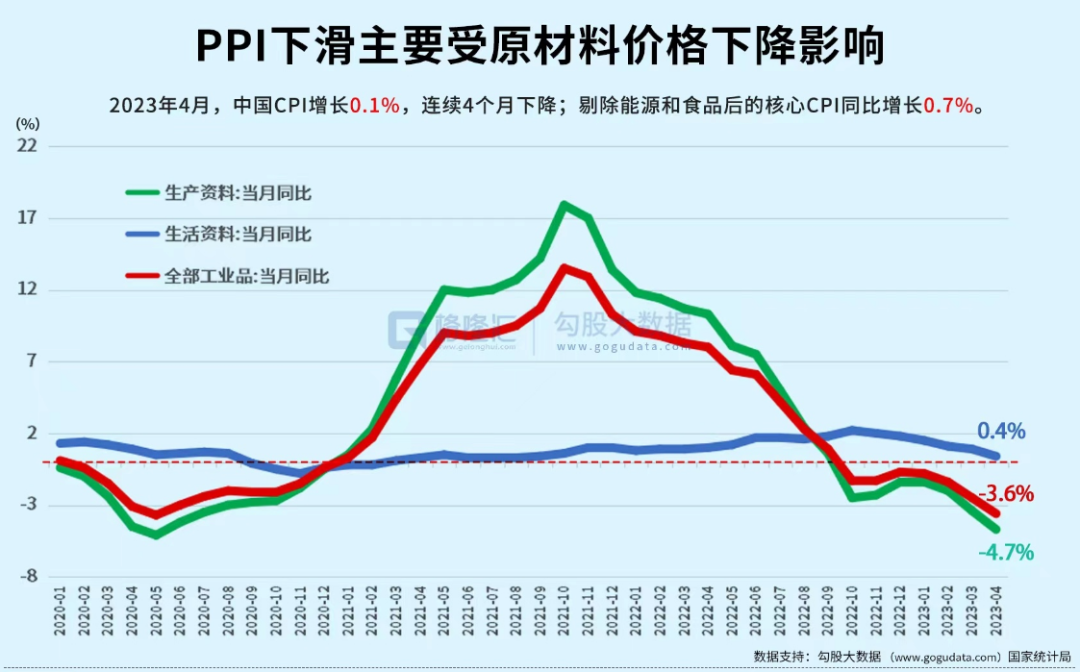 我们观察PPI年化增速的话,目前这个数字差不多在-3.6%,已经跌破了0轴,