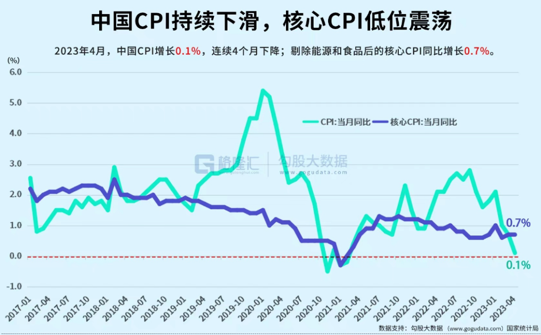 在这种情况下,我们才看到反应整体价格水平的CPI指数,短期出现了持续的下滑。