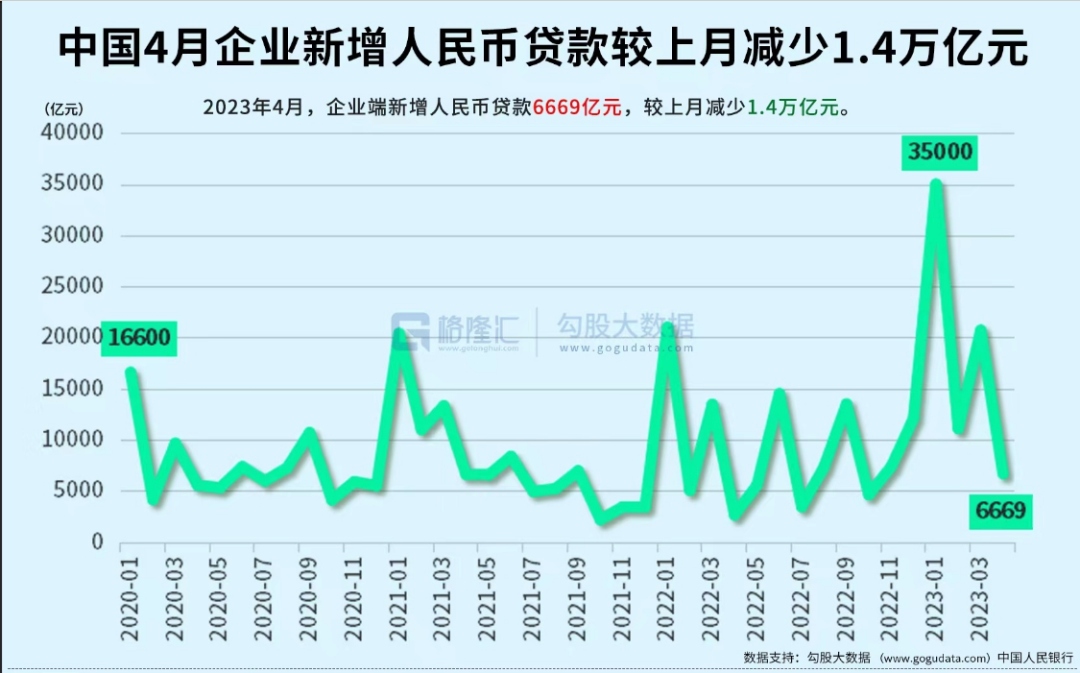 最终结果就是我们看到,4月的企业新增人民币贷款,也出现了大幅下降。