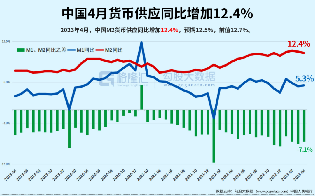 现在如果我们看M2的话,在维持连续几个月增长12%以后,目前依然在以12.4%的速度持续增长。