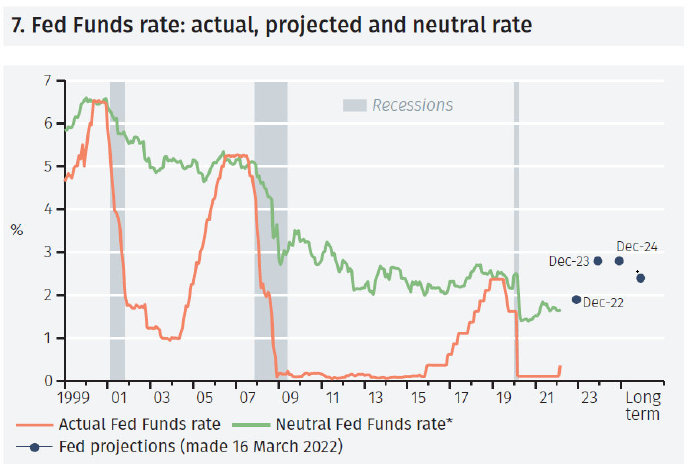 之前我们认为,美国加息会在2022年底左右的时候达到中性利率的水平。