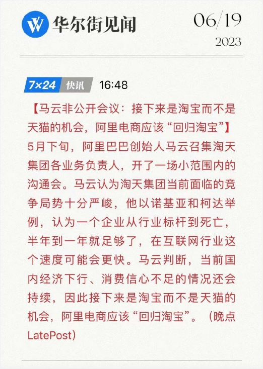 所以马老师在内部会议上才会说,这个阶段阿里电商应该要转向,回归淘宝了。