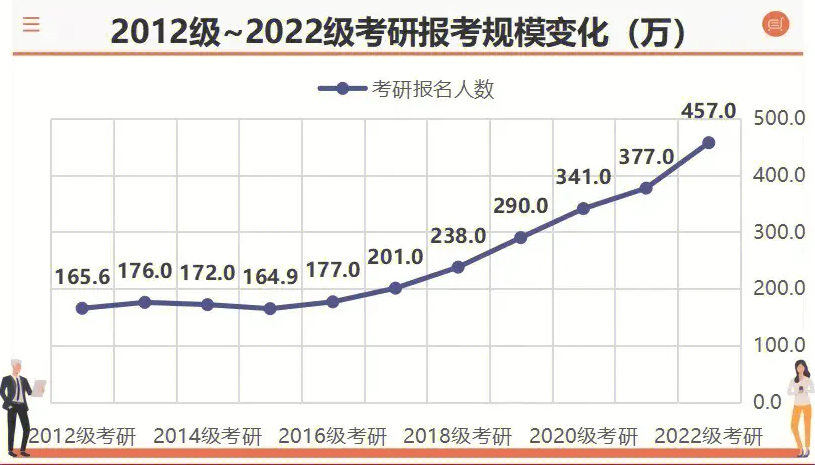 这也是为啥我们看到,每年考研的人越来越多,22年已经有四百多万学生参加考研了,23年有很大概率会超过五百万。