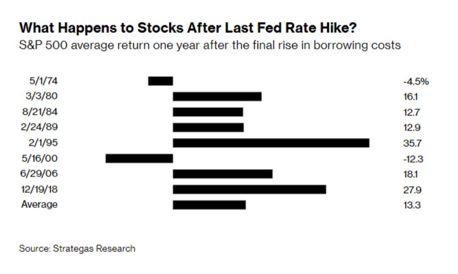 这里如果观察历史上美联储最后一次加息以后,标普500指数的趋势变化,会发现这个情况更加明显。