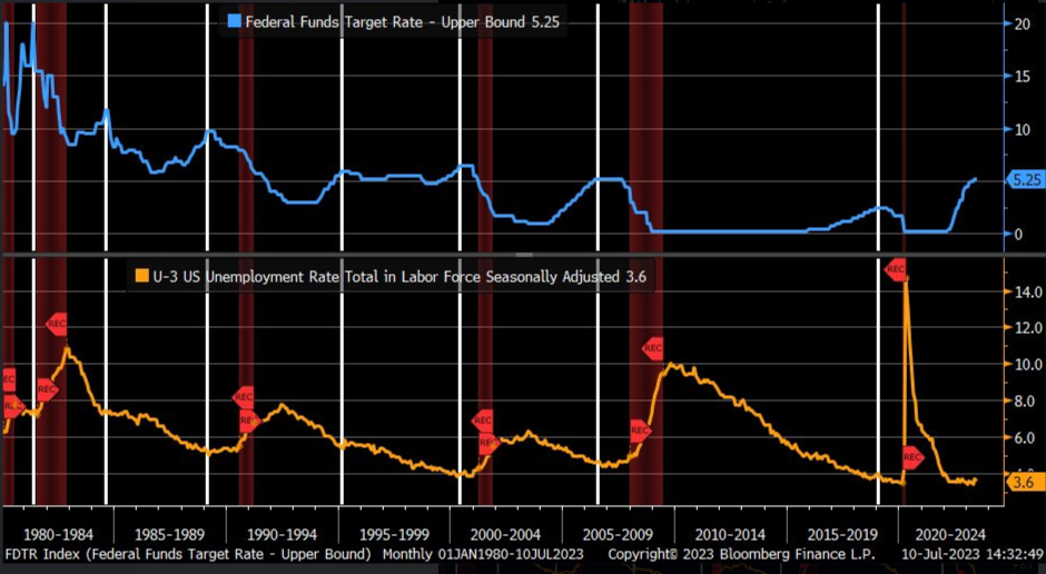 这次不一样的地方在于,以往每次加息的过程都伴随着失业率的下降,加息见顶失业率见底。