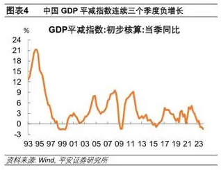 从过往的统计数据看,一般在平减指数为负的阶段,都是历史上经济增长压力比较大的阶段。