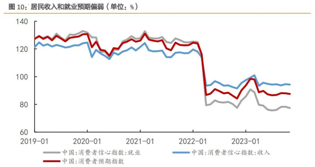看央行的统计数据其实也比较清晰,从2021年下半年因为担忧持续逆周期调节以来,伴随着需求的逐步回落,我们看到居民收入和就业预期是偏弱的。