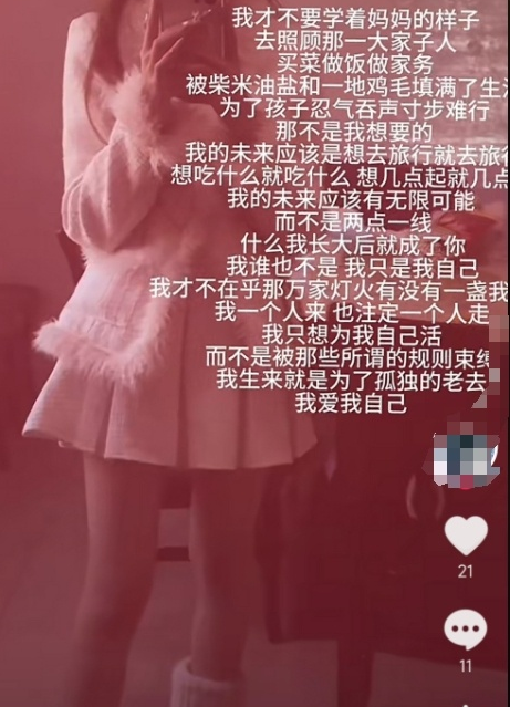 从这两张图片提及的内容看,这里面强调的都是要去责任化,大家要更多的爱自己。