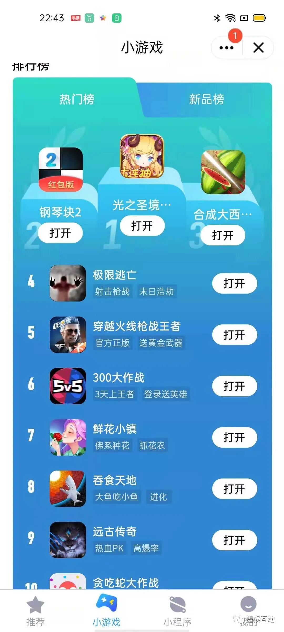 字节系就抖音是一个超级APP,头条都没多大量了,所以这里主要讲抖音,抖音大家都知道,短视频,所以这也是小游戏的主要流量来源之一。在视频的左下角可以一键点击去往小游戏。所以在游戏内容里需要做一些视频化分享的开发,游戏是不是一个爆款,完全取决于视频的流量,但更是和游戏本身的品质有关系,不是说游戏多么精致,而是很契合视频传播这个场景。比如前年过年红极一时的《最强的大脑》,估计开发者赚的盆满钵满。