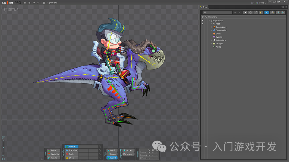最近在开发中遇上骨骼动画,之前没有怎么聊过这个主题,写一篇来谈谈我对这个的认识。骨骼动画或者说骨骼动画这个在游戏中还是运用的很多,尤其是精细的角色动画。刚入门的开发者可能还比较陌生,但要开发高品质的游戏,是必不可少的。制作骨骼动画的编辑器很多,比较知名的有Spine/Maya/DragonBones等等。研发DragonBones(龙骨动画)的公司(白鹭引擎的公司)已经不在了,很可惜,但技术还是值得一说。龙骨动画(DragonBones)包含了骨骼动画编辑器和运行时动画解决方案,用于创建和展示2D骨骼动画。