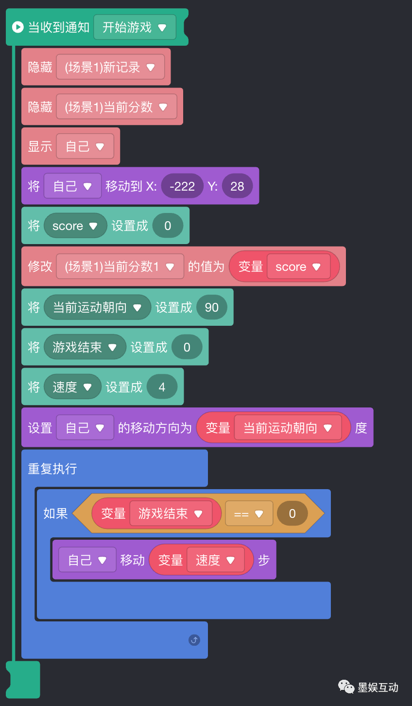 游戏核心逻辑是球具备一定的速度,点击屏幕控制球的运动方向,每点击一下运动方向转90度。球碰到墙就死了,然后播放一个死亡效果。碰到目标物体就加一分,每走过一圈速度加快。