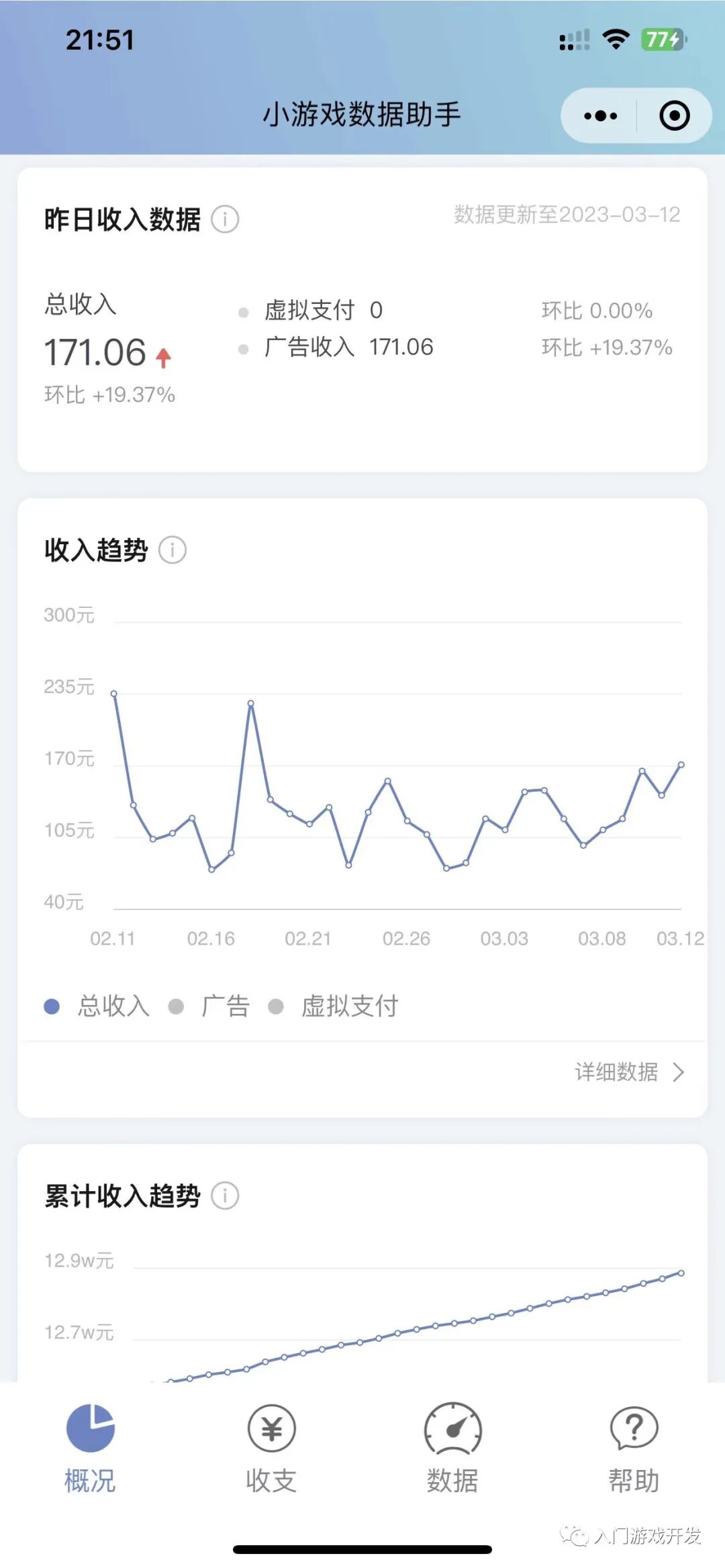 收入:指游戏的付费收入、广告收入(包括banner/激励视频)等。通过收入的分析可以了解游戏盈利情况以及玩家的付费意愿。