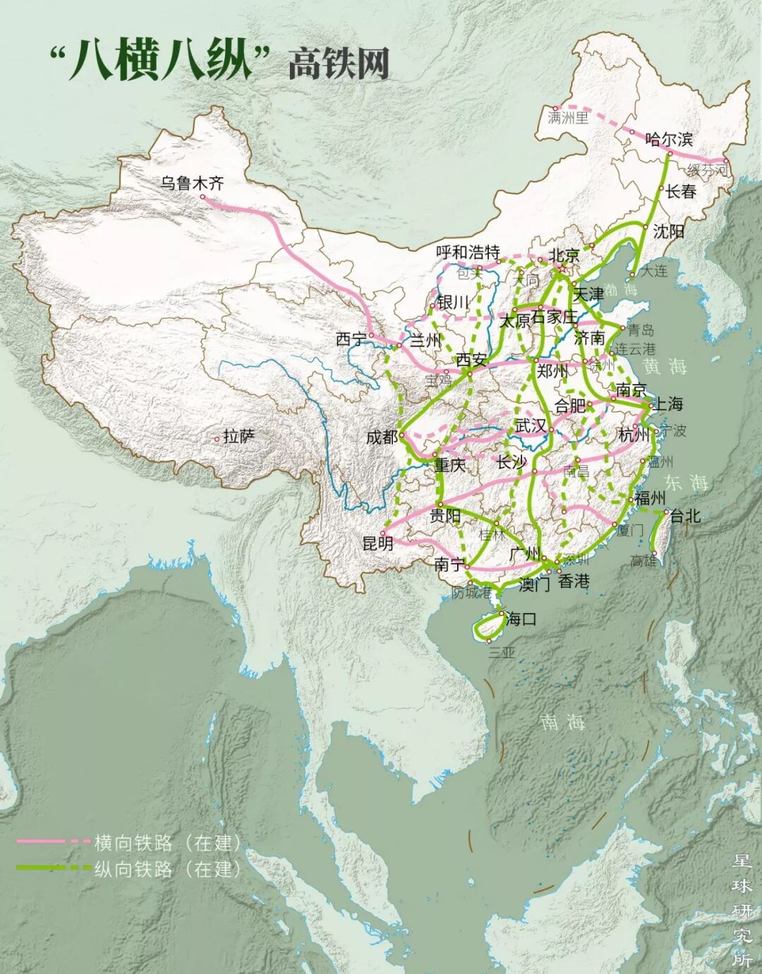 ▼“八纵八横”高速铁路规划,制图@张靖/星球研究所