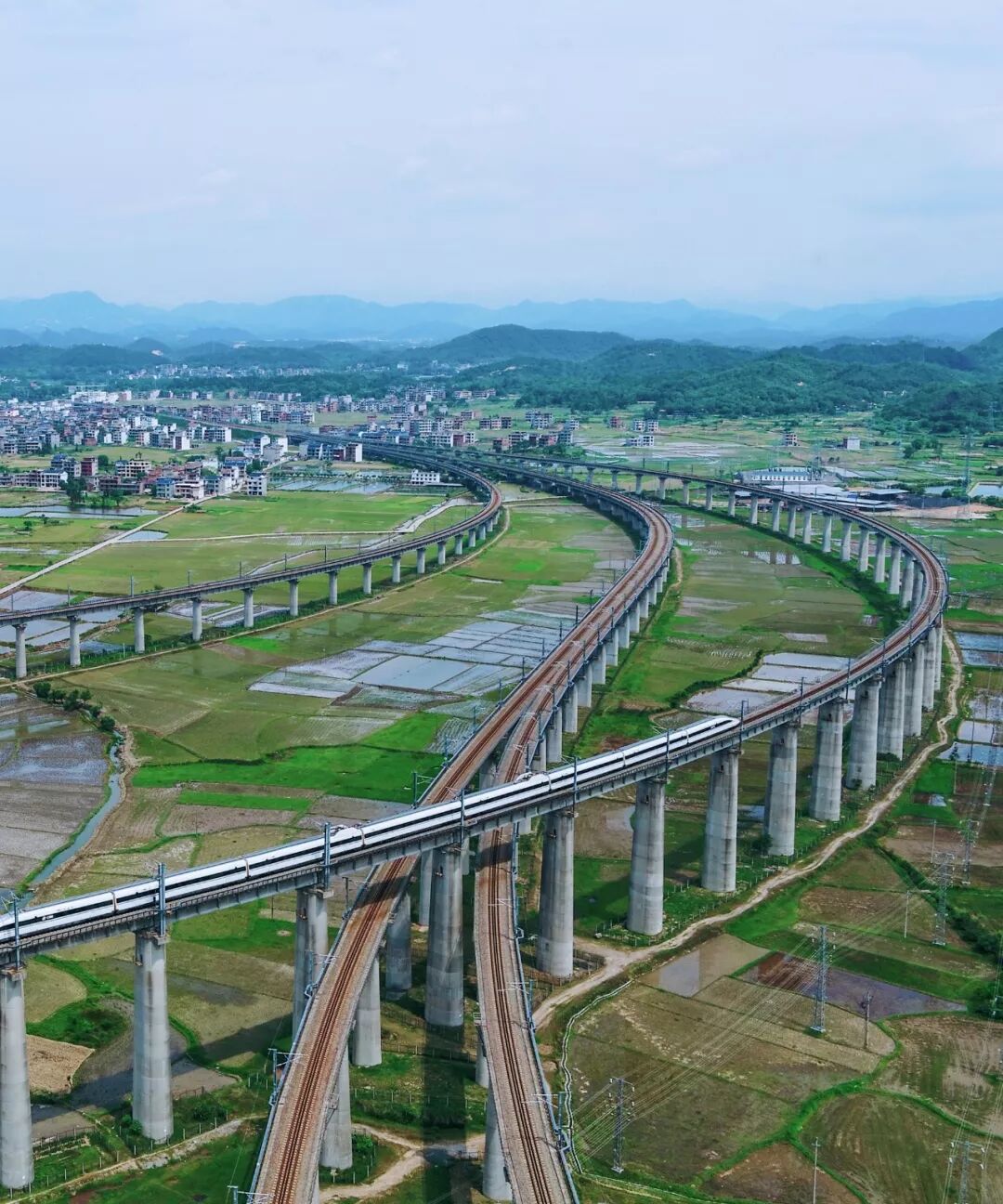▼沪昆高铁与合福高铁交汇,拍摄于江西上饶附近,摄影师@王璐