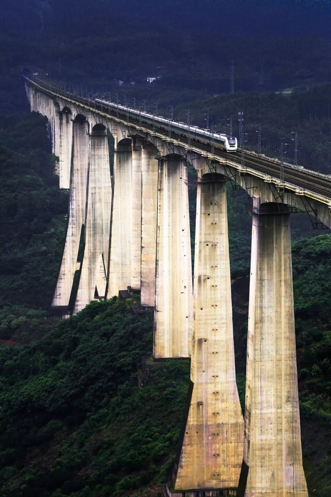▼蔡家沟特大桥,位于沪汉蓉快速客运通道的重庆-利川段,最高墩139米,是世界上最高的双线铁路桥墩,摄影师@武嘉旭