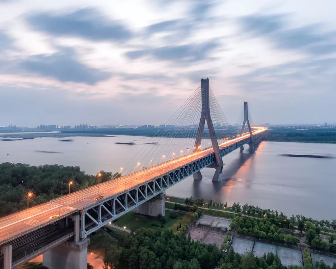▼武汉天兴洲长江大桥,4条轨道能同时通过京广高速和普速铁路,摄影师@田春雨