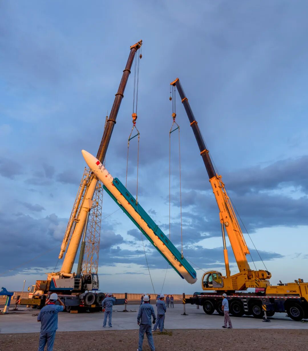 (中国民营火箭双曲线一号起竖过程,摄影师@陈肖)