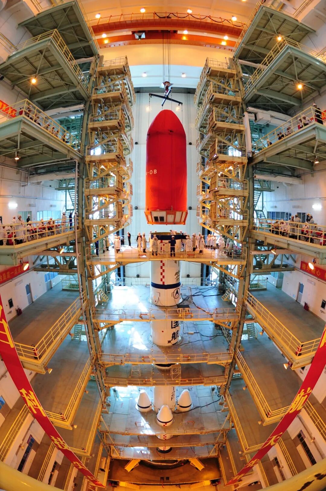 (火箭整流罩,用爆炸螺栓连接,螺栓起爆即可解锁分离、抛掉整流罩;下图为长征七号整流罩,作示意,摄影师@王若维)