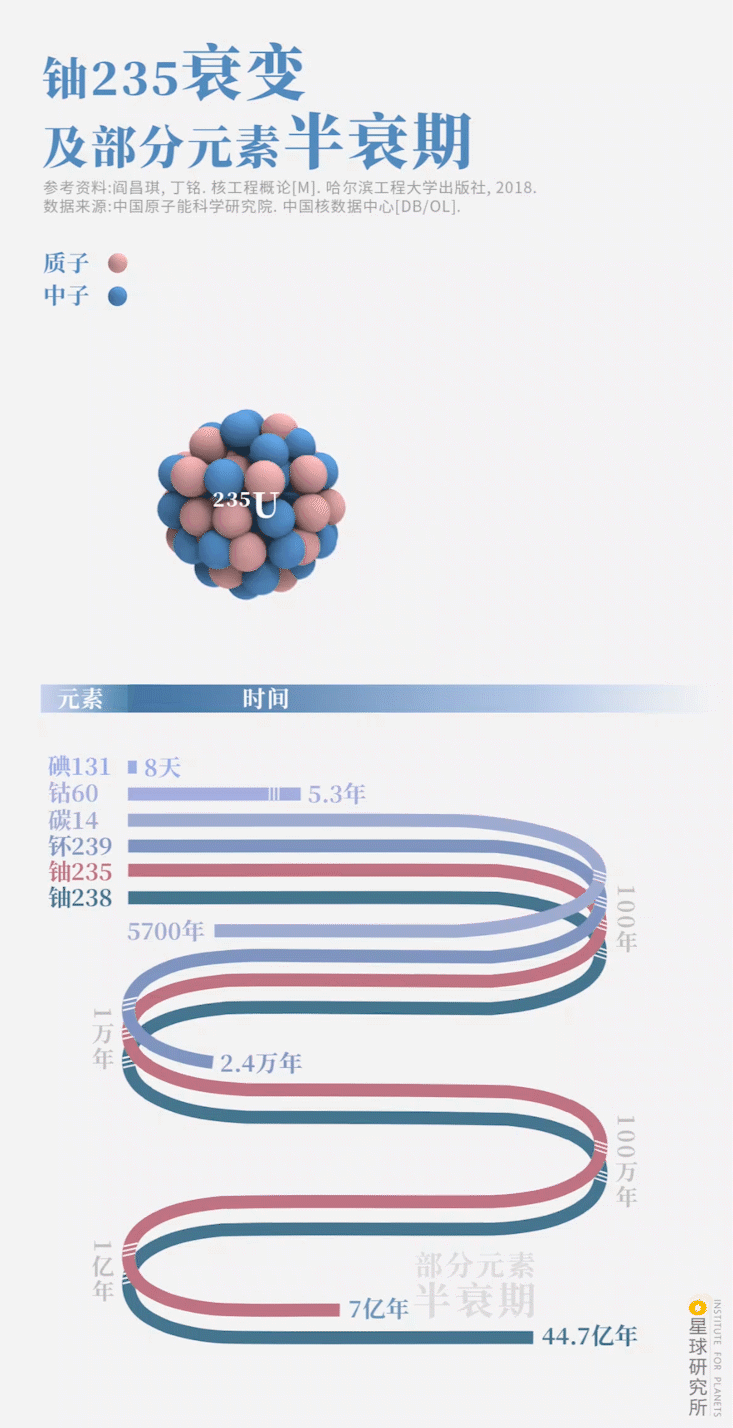 (铀235衰变及部分元素半衰期,制图@罗梓涵/星球研究所)