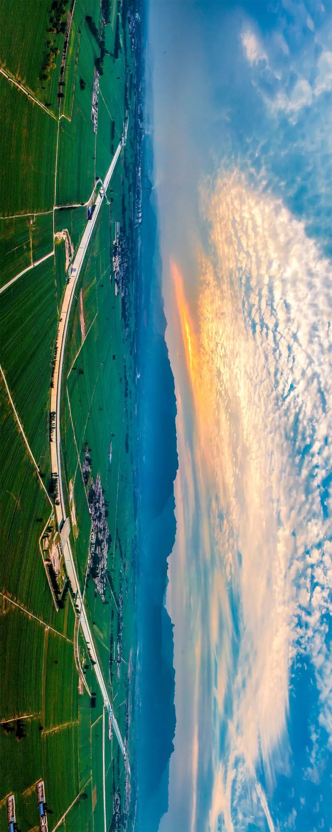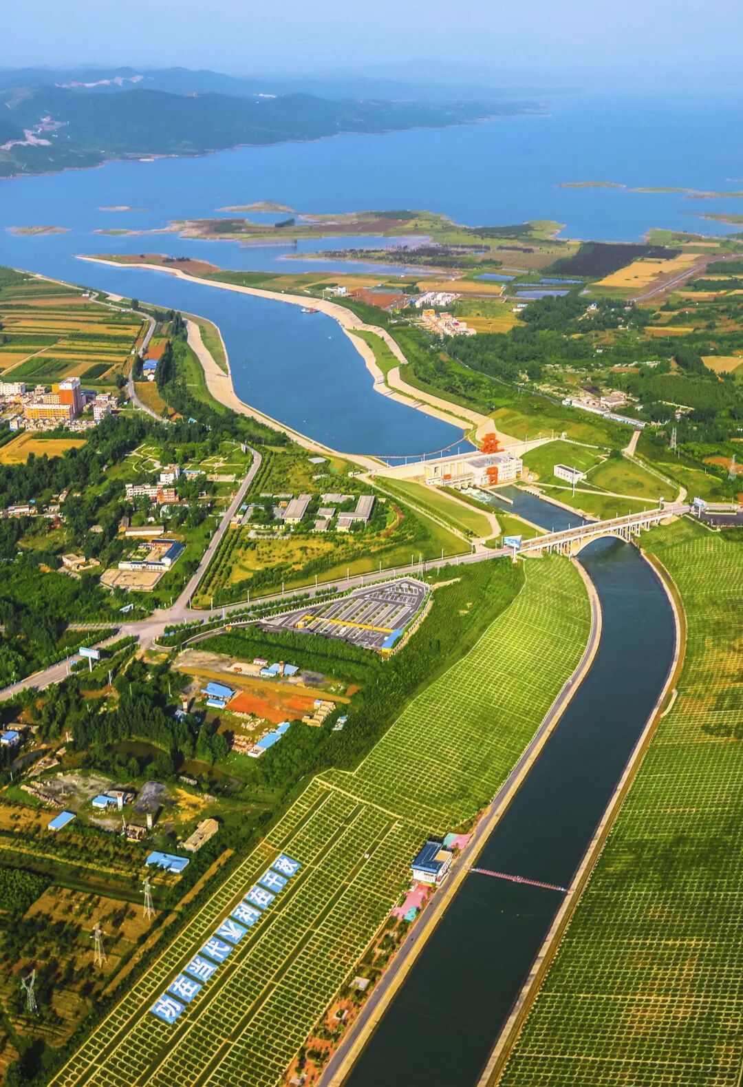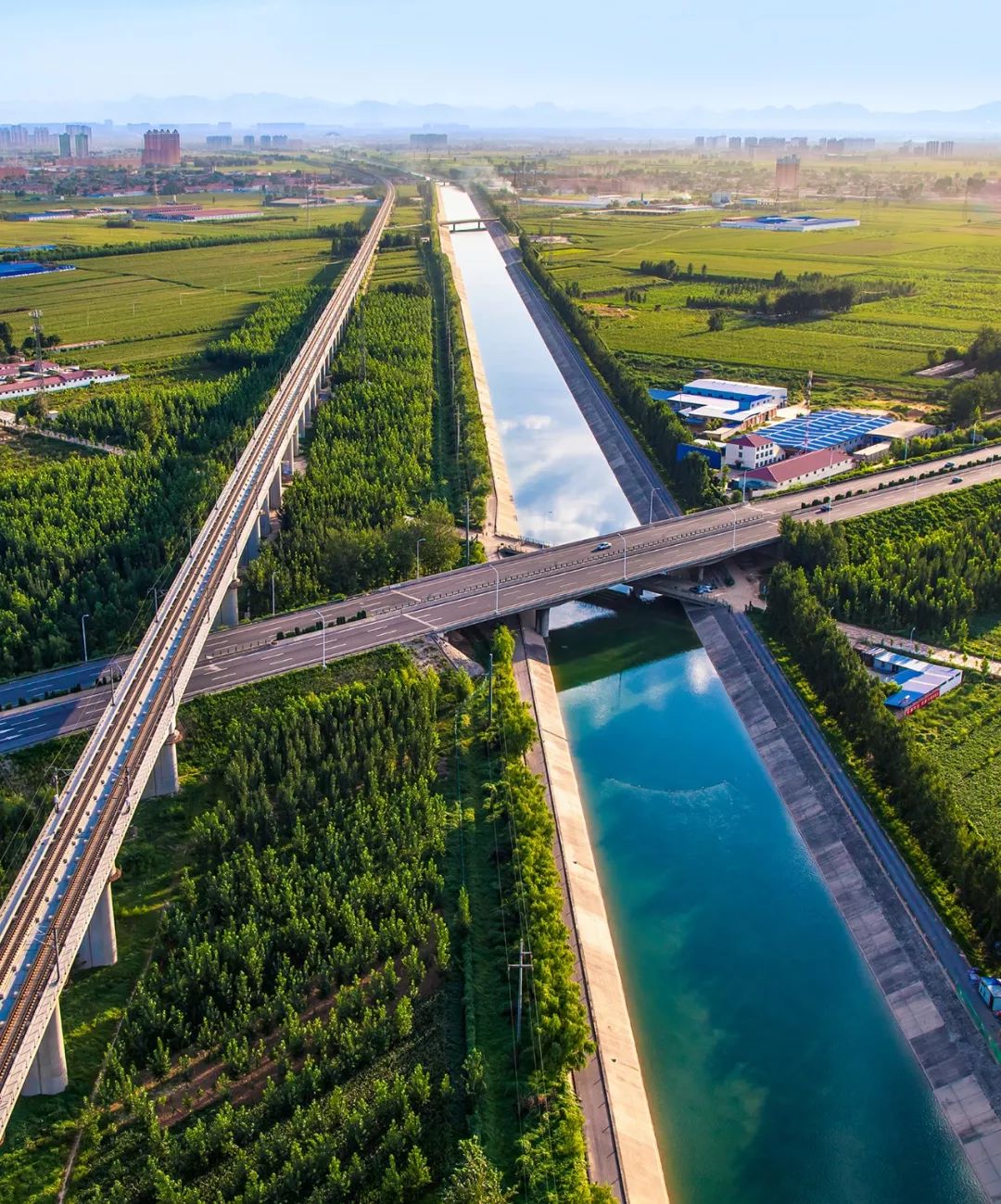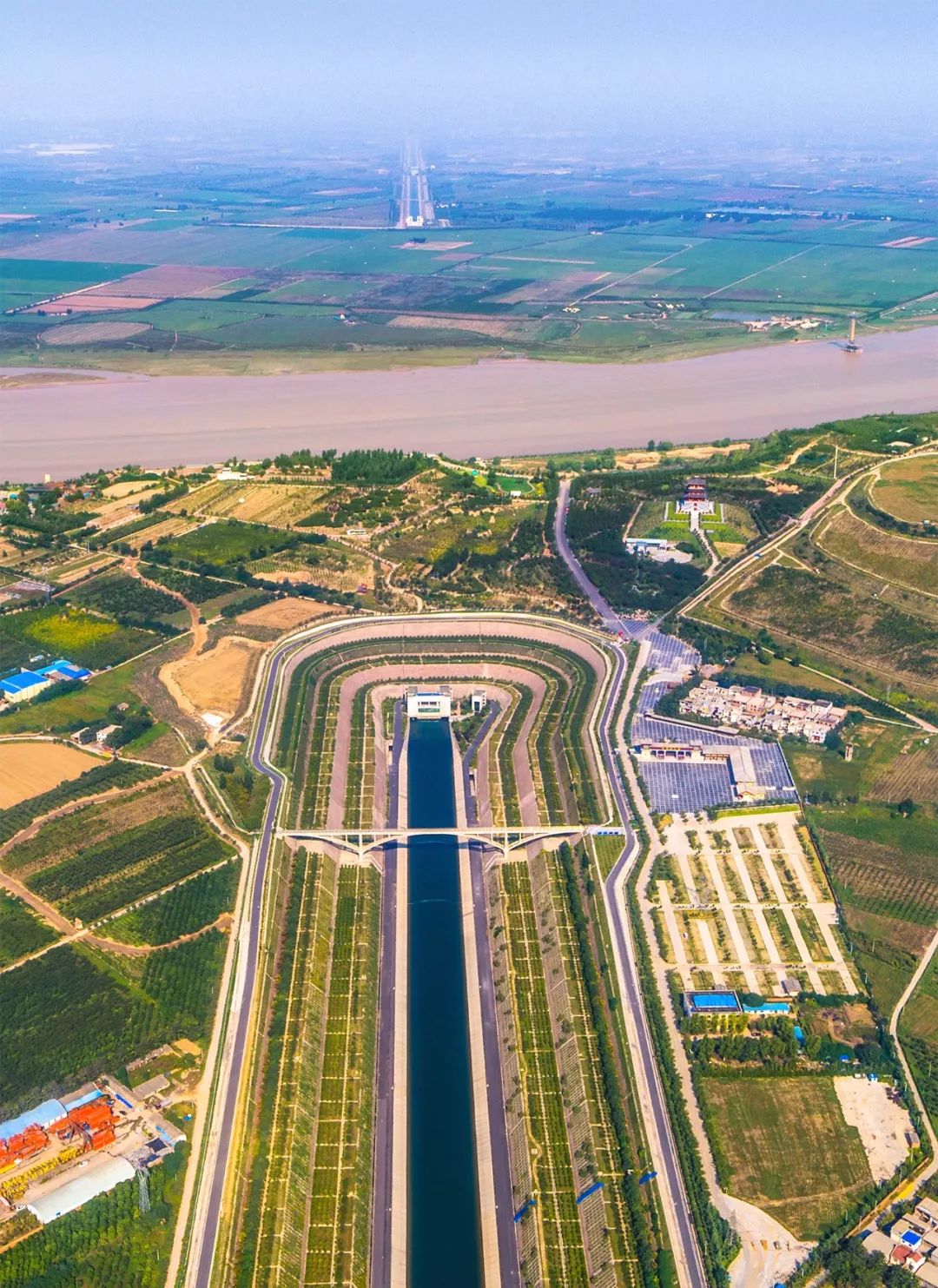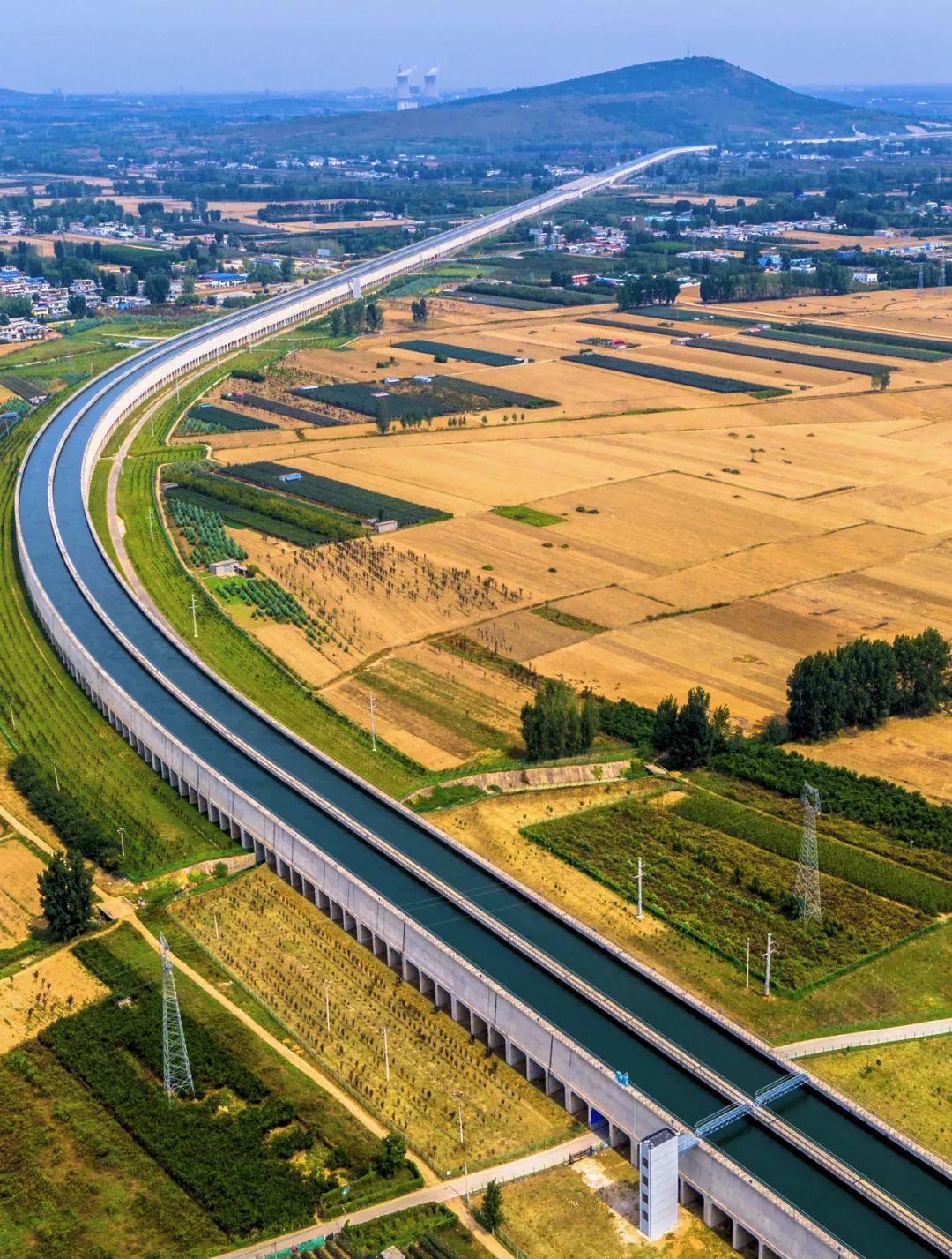(请横屏观看,南水北调水渠流经河南新乡市辉县的农田,摄影师@韩自豪)