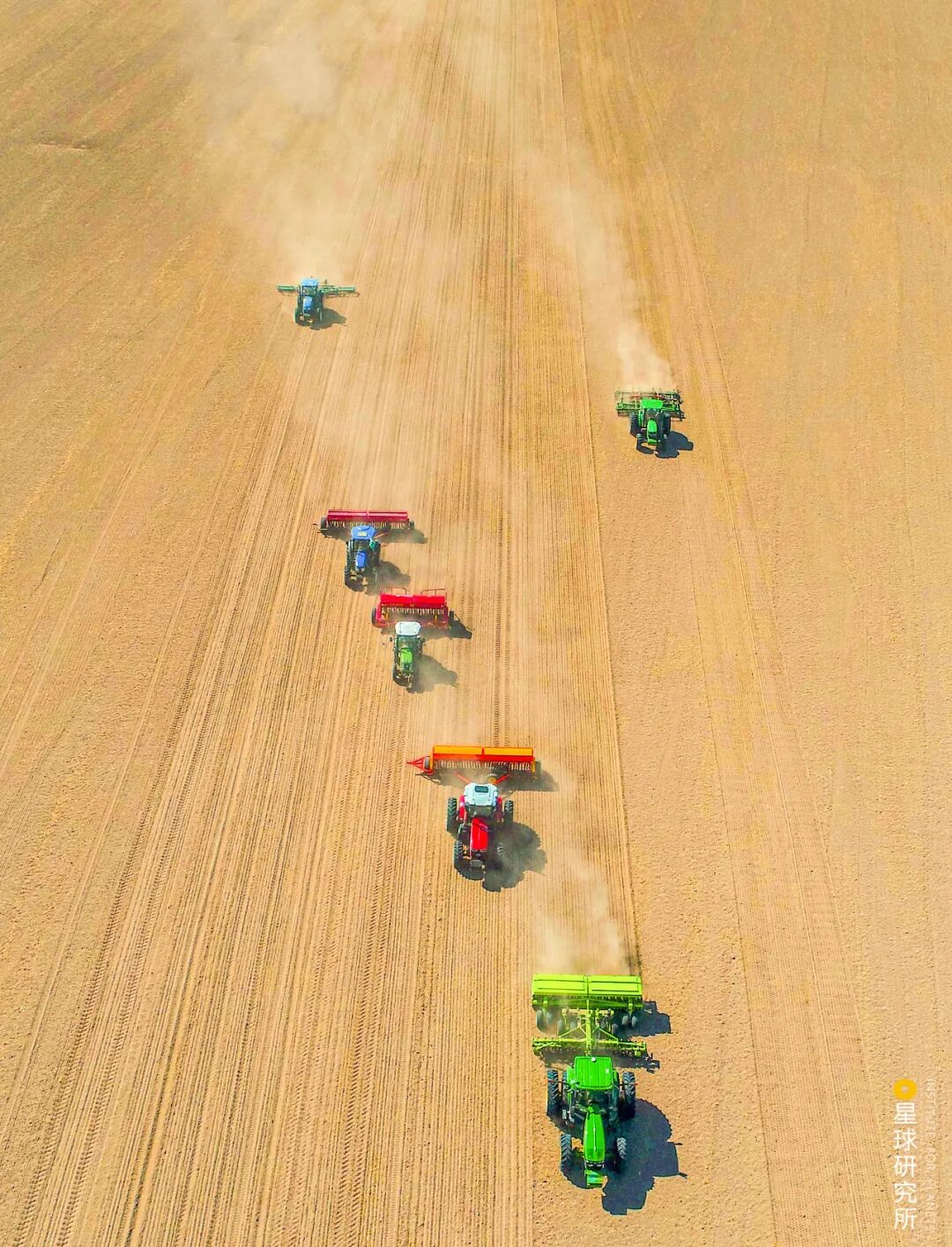 (下图为安装有北斗导航系统的播种机工作的场景,位于吉林省,摄影师@邱会宁)