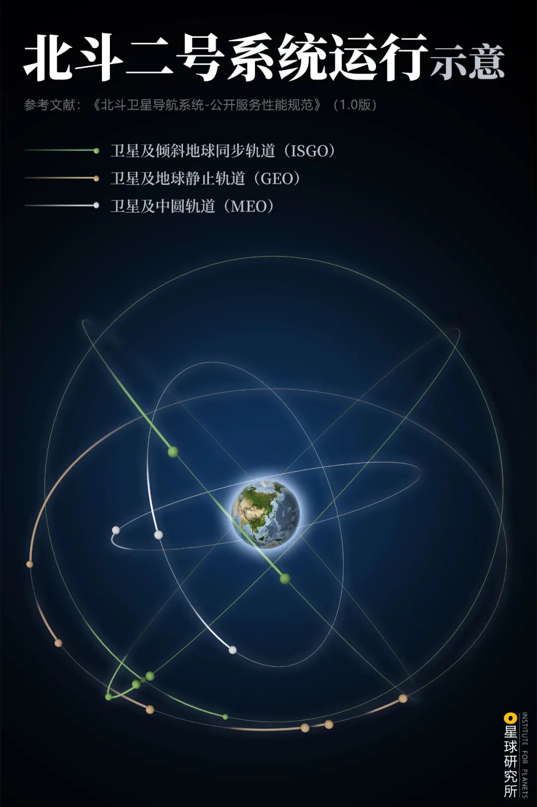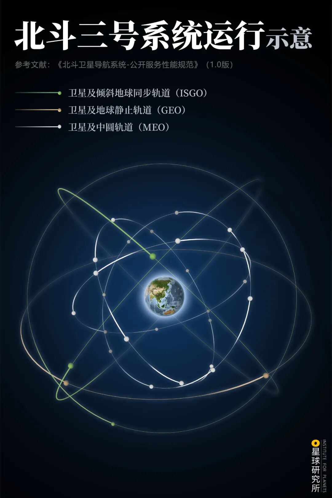 (北斗“完全体”,包括北斗二号卫星16颗,北斗三号卫星30颗,制图@郑伯容/星球研究所)