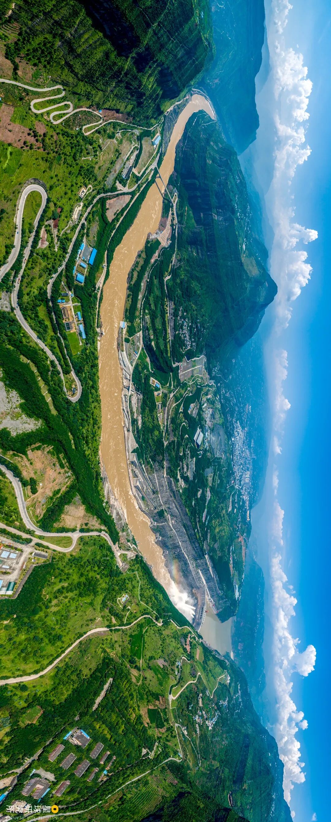 (请横屏观看,画面右下方是中国第二大水电站溪洛渡水电站。目前已经有超过150个监测点安装于水电站两侧的边坡,并且不间断提供毫米级精度的数据,以便及时发现安全隐患,摄影师@柴峻峰)